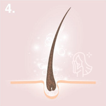 Hair strands will grow to be stronger as scalp starts to produce new hair. Hair will look fuller and shinier.